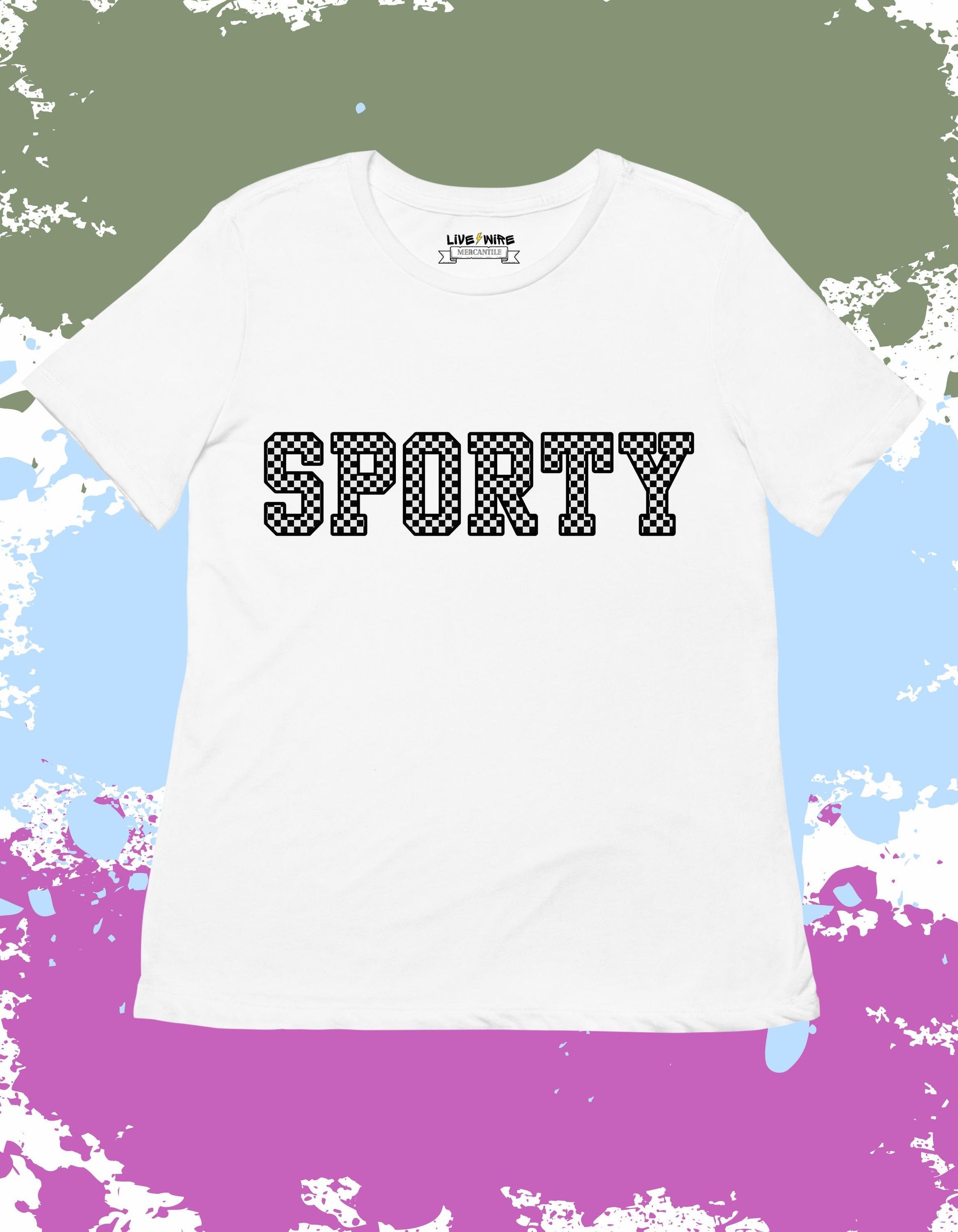This SPORTY tee keeps it clean and classic with bold varsity letters filled in checkered flag style—because around the track, that’s all that matters. It’s got just the right amount of edge for pit lane, race day, or post-race beers with your crew.