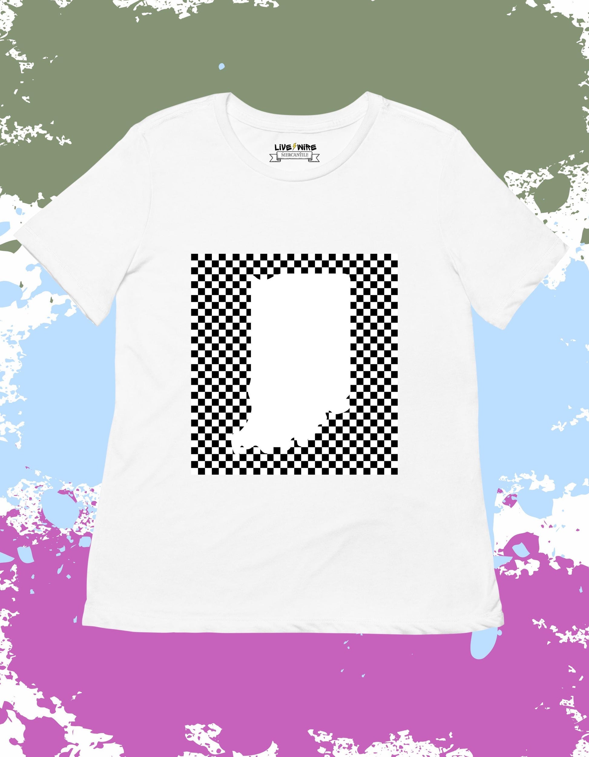 Indiana is the home of the greatest spectacle in racing—and this tee makes it clear. Featuring a white Indiana silhouette over a classic checkered flag background, this design is a must for May in Speedway. Whether you're headed to the track or chilling at home, you'll look race-day ready in this comfy tee, crop, tank, or sweatshirt.
